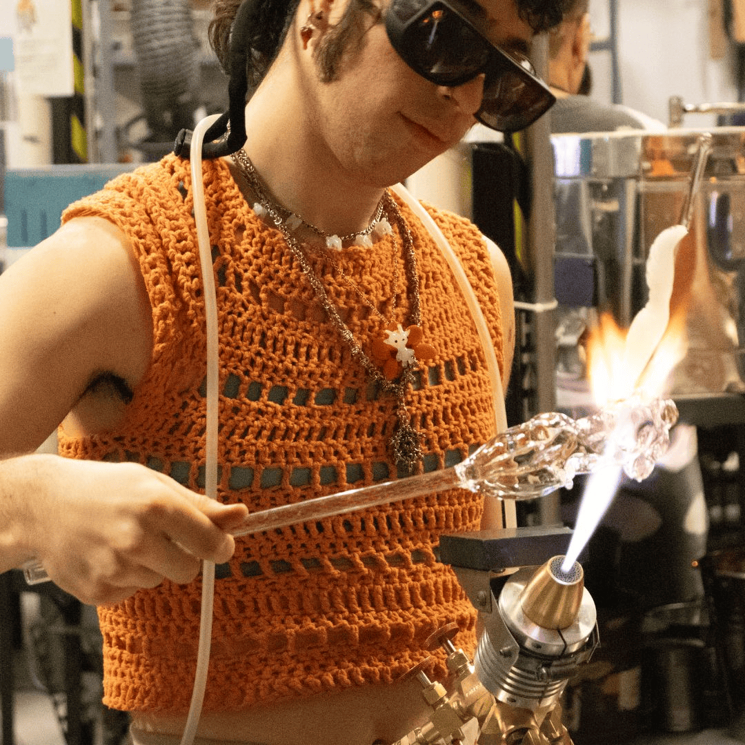 Come hang with us every first Friday! See the skills and teamwork that go into shaping molten glass, meet friendly local artists and shop a pop-up Studio Sale featuring beautiful glassware and jewelry crafted by our community. Soft drinks and snacks are on the house.