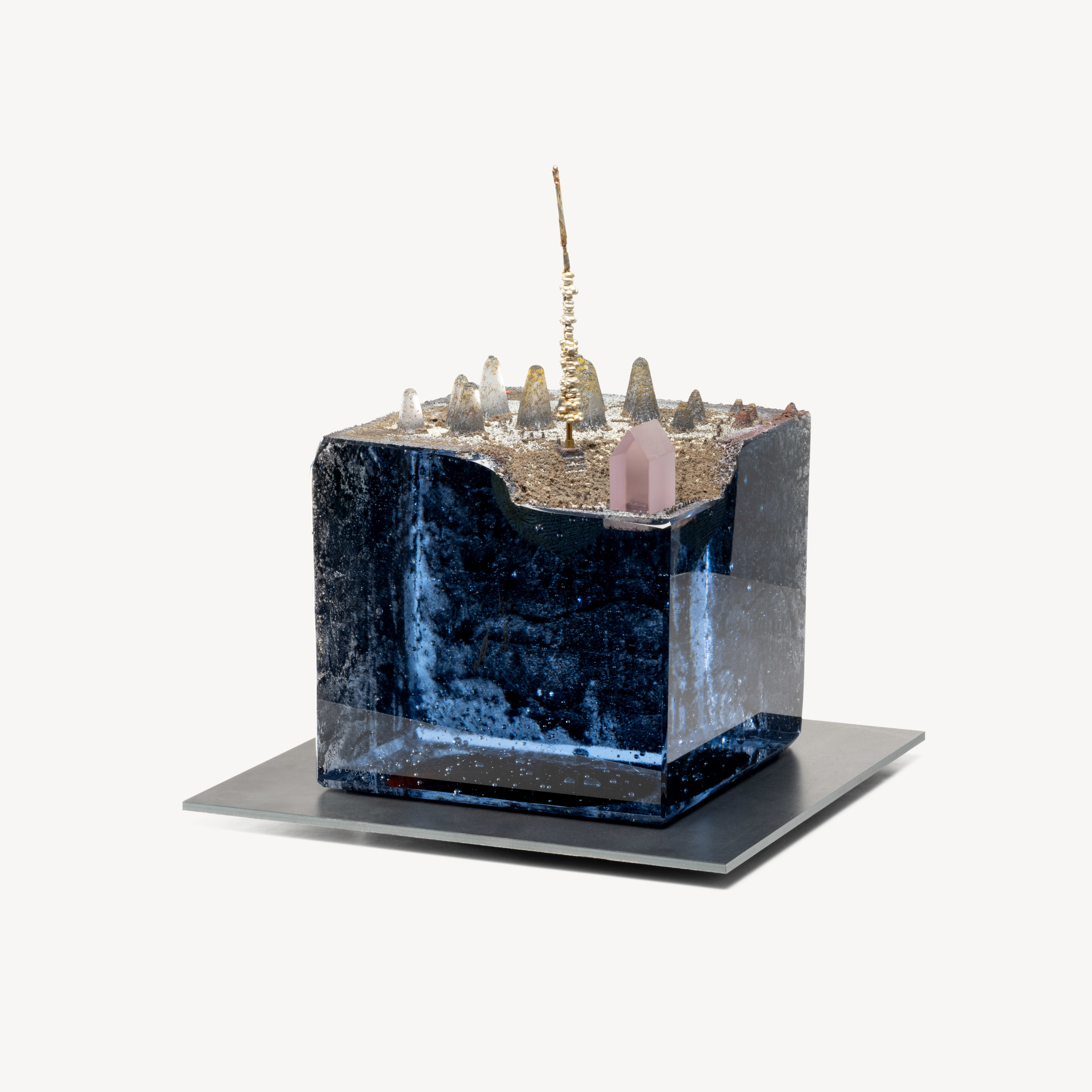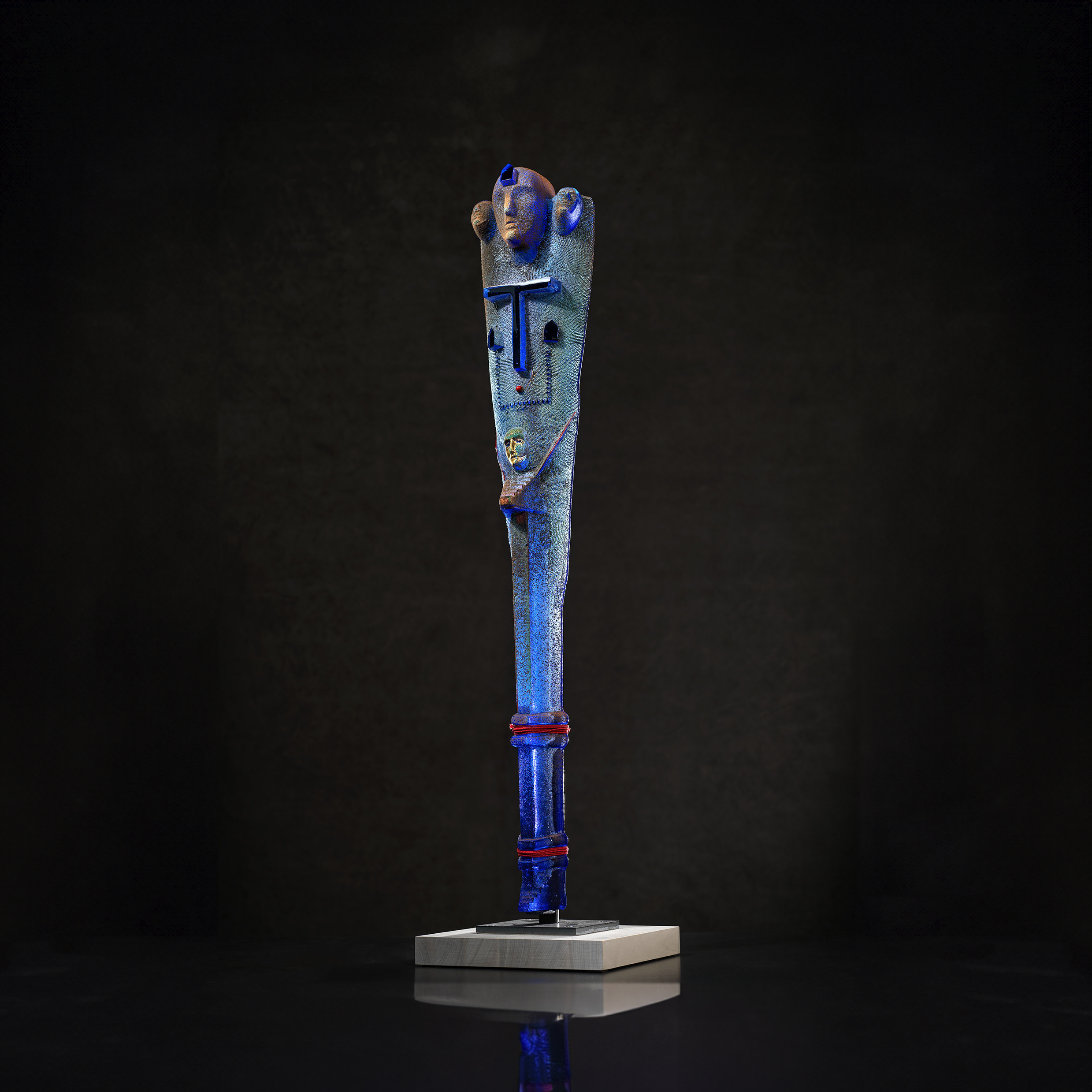 The title also nods to David Bowie’s Starman, one of several musical touchstones that inform Vallien’s artistic sensibility. Like Bowie he is a mythmaker who weaves and tells dark fairy tales - Vallien’s are brought to life in glass by his dedicated team at Kosta Boda. His sand-cast sculptures are created utilizing a modern adaptation of ancient metal casting techniques dating back to 2000 BCE. In the mid-1980’s Vallien perfected the process of making compacted-sand molds into which he impresses shapes and sculpts images that will be filled with molten glass. The resulting sculptures deliver rough textured granular surfaces that vibrate with energy as they speak of the immediacy of his process while supporting a symbolist language which nods knowingly towards the Art Brut tradition. Vallien’s storytelling through glass is infused with a musical essence. His works carry a spiritual musicality: forms unfold rhythmically, surfaces resonate like sustained notes, and motifs recur with the logic of a composition. Vallien’s visual language operates as a score, where repetition, variation, and pause shape meaning as much as material and form.