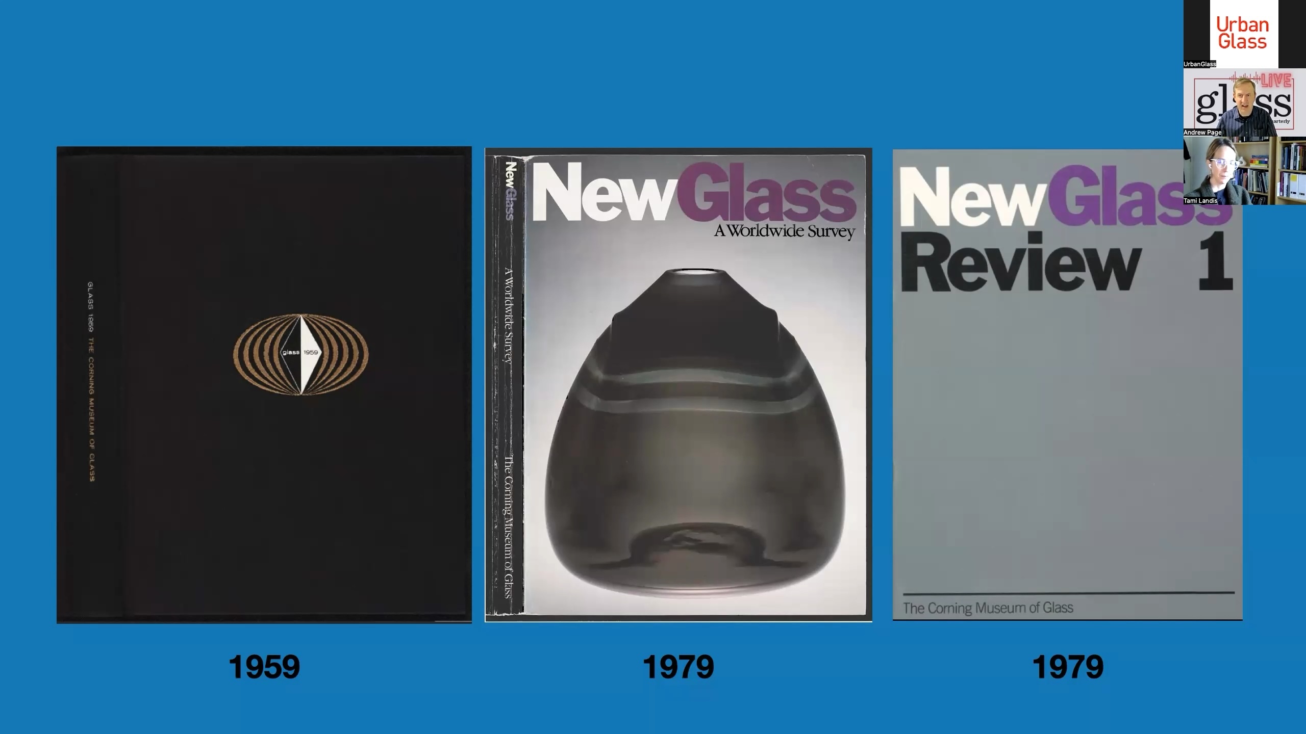 In the episode, Tami reviews the 45-year history of New Glass Review, which grew out of the aforementioned Glass 1979 exhibition, with the idea of an annual exhibition in print to keep up with the many fast-moving developments of those years of ferment and rapid progress, both technical and conceptual. She also discussed how the survey exhibition 1959 set the stage for the "1979 New Glass Worldwide Survey," which birthed the first New Glass Review in 1980.