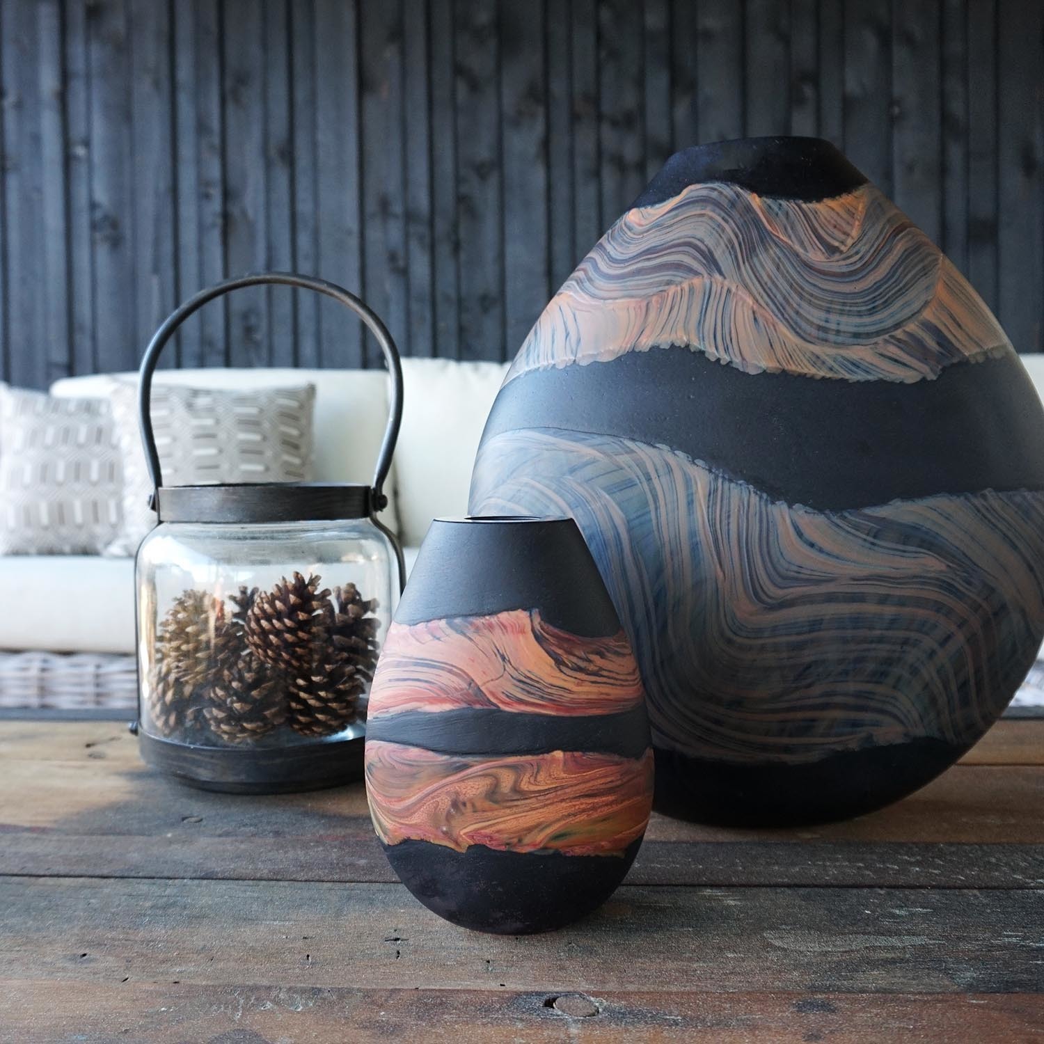 Taupō, the town where they live and work, actually sits on the shore of a lake formed by the caldera of a supervolcano that is known to have caused two of the most violent eruptions in Earth’s recent geological history. There is something to be found here in the story of the Taupō volcano, the power of natural processes, and even the romantic notion that volcanoes are the original artists, raining down volcanic glass with every eruption. Existing in this type of ecology and surrounded by the Oscar winning landscapes of New Zealand, Lynden Over and Christine Robb drew inspiration from their surroundings in all of their glass artworks. Their home was their muse.